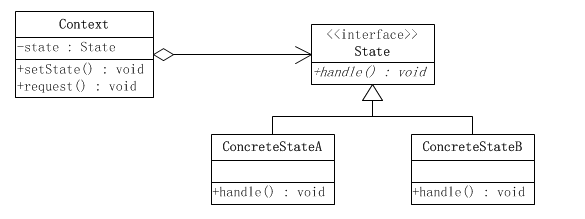 public class AntFarm { static int eatstate = 0;//表示自己吃饭状态 static int vistitorstate = 1;//表示有访客状态 static int state; public AntFarm() { state = 0;//初始化时小鸡为吃饭状态 } public void invite() { if (state == 0) { System.out.println("邀请别的小鸡"); state = vistitorstate;//状态修改 } else if (state == 1) { System.out.println("已有访客,请勿重复邀请"); } } public void expel() { if (state == 1) { System.out.println("把访客送走"); state = eatstate; } else if (state == 0) { System.out.println("当前没有访客"); } }} 当对象有多种状态的时候再用条件语句显然很不好了,但引入状态模式可以省去条件语句的判断;